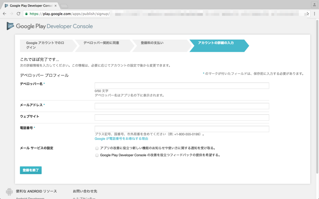 Google Play デベロッパーアカウントに登録する際の注意点