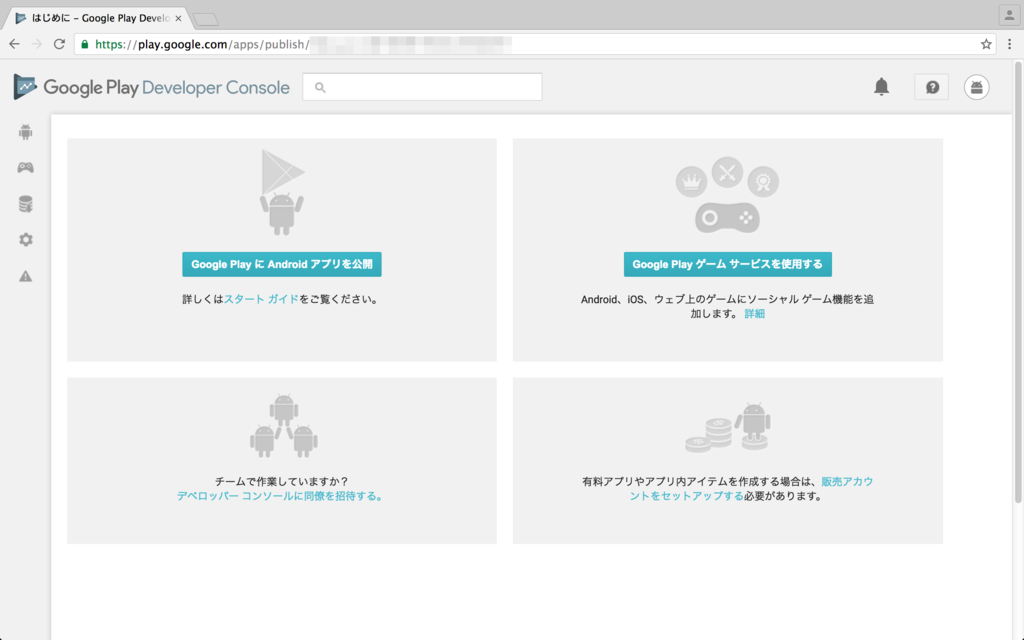 Google Play デベロッパーアカウントの作成アクセスします。
